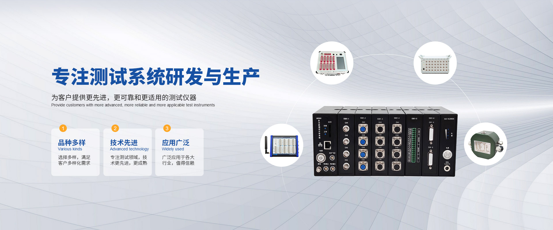 我們的無(wú)線遙測(cè)系列、應(yīng)變儀、放大器、數(shù)據(jù)采集分析系統(tǒng)等產(chǎn)品已得到廣泛應(yīng)用和客戶的一致好評(píng)